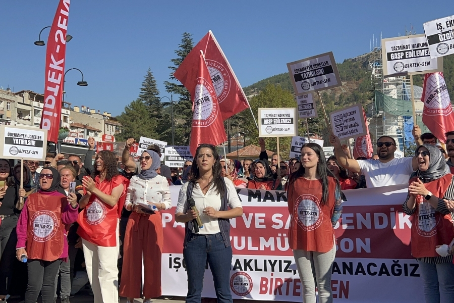 Hak arama mücadelelerinde Öz İplik İş Sendikasının patronun yanında kendilerinin karşısında durduğunu vurgulayan Arıcı, “Patronun zor durumda olduğunu, hiç parasının olmadığını söyledi bize. Biz de patronla işbirliği içinde olan, bize ihanet eden Öz İplik İş Sendikasından istifa ederek, işçilerin kurduğu, işçilerin yönettiği BİRTEK-SEN’e üye olduk.” dedi.