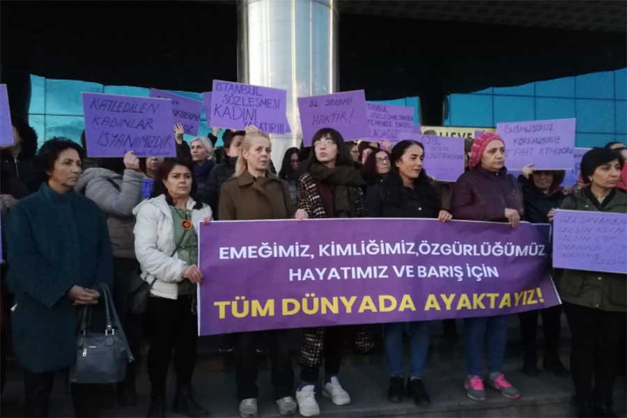 “Susmuyoruz, Korkmuyoruz, İtaat Etmiyoruz”, “Yaşasın Kadın Dayanışması, Yaşasın 8 Mart” sloganları atan kadınlar, ıslıklarla, alkışlarla kadın düşmanı politikaları protesto etti. Basın açıklamasını yapan Ayça Toprak, kadın direnişlerinin tüm dünyayı sardığını söyledi. Toprak, “Biz kadınlar AKP iktidarının yasalarla, fetvalarla ne giydiğimizden nasıl yaşadığımıza kadar uzanan bitmek bilmeyen kadın düşmanı politikalarla yaşamlarımızı hedef aldığını biliyoruz. Evde, işyerlerinde, sokakta şiddetin her biçimi meşrulaştırılıp cezasız bırakılırken kadınlar güvenliksiz ve güvencesiz bir yaşama mahkum edilmeye çalışılıyor” dedi. Kadınlar, 8 Mart günü Sakarya Caddesi’nde yapılacak eyleme katılım çağrısı yaptı.