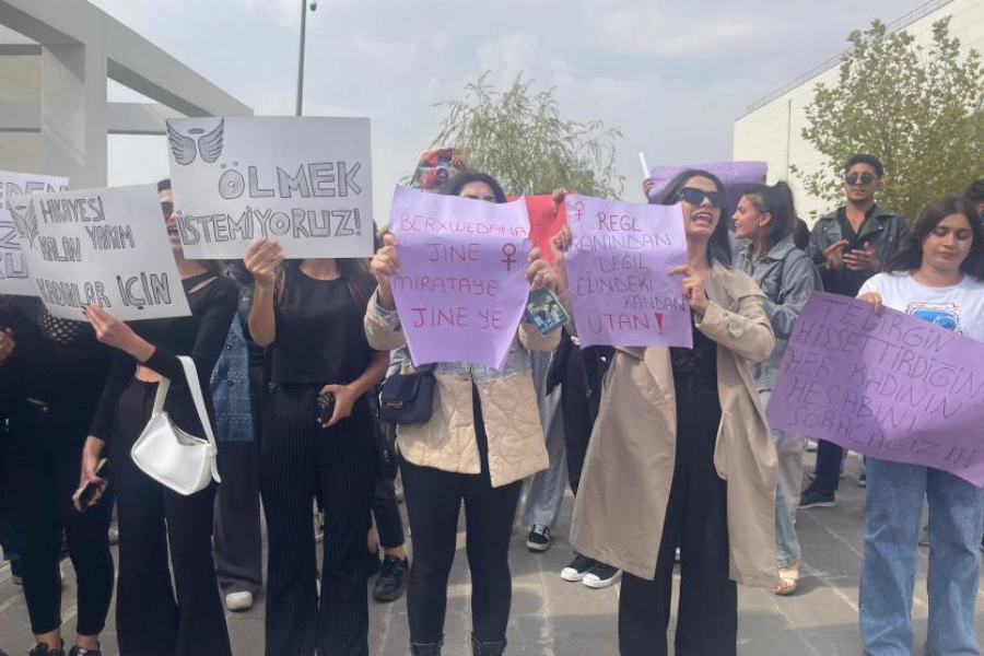 Mühendislik fakültesi önünde bir araya gelen öğrenciler kampüs içinde yürüyüş yapıp yemekhane önünde açıklama yaptı. “Rojin için adalet herkes için adalet” şiarıyla gerçekleşen yürüyüşte, “Berxwedana Jina”, “Ölmek istemiyoruz”, “Hikayesi yarım kalan kadınlar için” dövizleri taşındı.