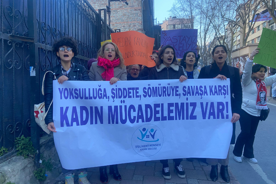 Şişli Kent Konseyi Kadın Meclisi, “Yoksulluğa, şiddete, sömürüye, savaşa karşı kadın mücadelemiz var” diyerek bu yıl 3'üncüsü düzenlenen Geleneksel Gece Yürüyüşü’nde buluştu. Basın açıklamasını Şişli Kent Konseyi Kadın Meclisi Başkanı Arzu Kesim okudu. Açıklamada her gün kadınların erkekler tarafından öldürüldüğü, tehdit edildiği; evinde, işinde, sokakta şiddete uğradığı ama buna karşı mücadelelerini büyütecekleri ifade edildi.