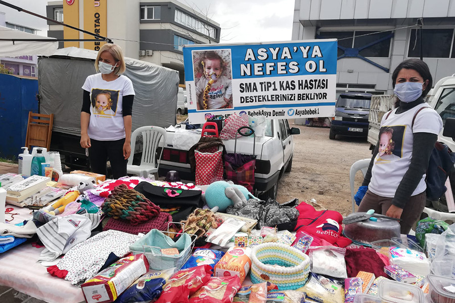 Antalya Kepez Zafer Mahallesi semt pazarında SMA hastası Asya Demir için ailesi kermes düzenledi. Asya Demir’in ailesi, gönüllülerin desteği ile sosyal medyada yürütülen kampanyanın ardından düzenlenen kermesle ve düzenleyecekleri kermeslerle daha çok kişiye ulaşmayı hedefliyor.