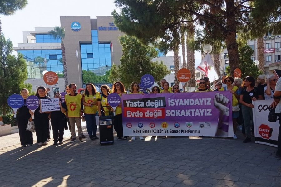 Aydın Söke'de kadın cinayetlerine karşı belediye meydanında bir araya gelen kadınlar “hayatlarımızdan ve haklarımızdan vazgeçmiyoruz” diyerek bir basın açıklaması gerçekleştirdi. Basın açıklamasını Söke Kadın Platformundan Ayşe Ateş ve Söke Eğitim Sen Kadın Sekreteri Aslı Geyik okudu.