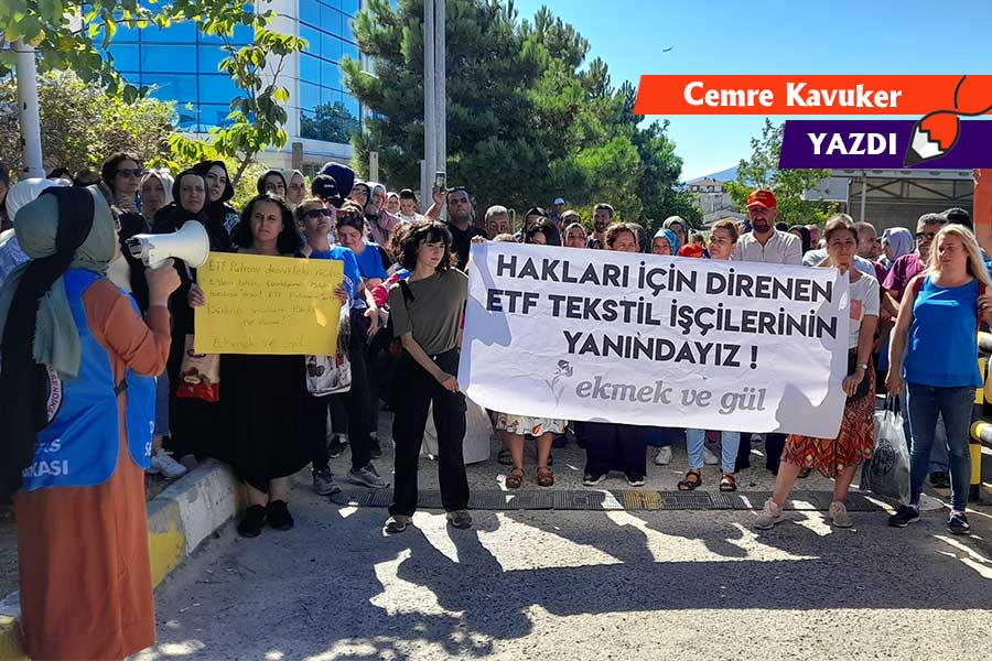 Fabrikaları kapatılıp haklarına patron tarafından el konmaya çalışılan çoğunluğu kadın ETF işçilerinin gerektiğinde sendikayı da karşısına alıp, zorlayıp hakkını talep ettiği bir süreç yaşandı. ETF işçisi Sema “Uzun yıllardır mobbinge ve farklı psikolojik şiddetlere maruz kalıyoruz. Ev bulamayan, kiralarını ödeyemeyen bir sürü kadın arkadaşımız var. Biz sonuna kadar direneceğiz” diye kadın işçilerin kararlılıkları ardındaki ihtiyaca dikkat çekiyor.
