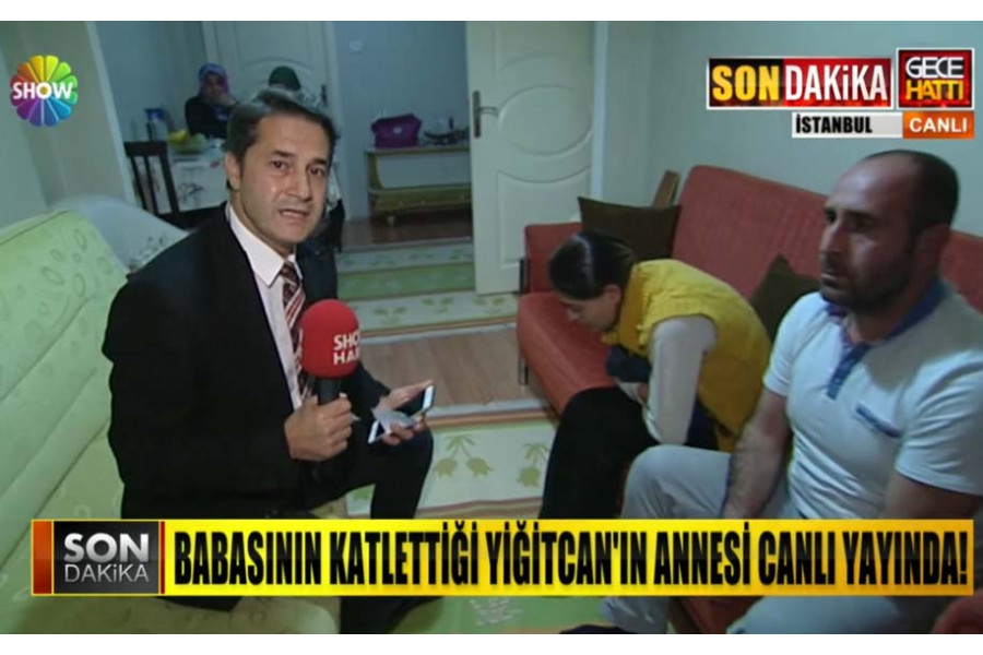 9 yaşındaki Yiğitcan’ı öldürmeye teşebbüs eden Nezir Türkoğlu’nun yanına bu kâr kaldığı gibi bir de savcılıktan çocuğu ayda iki defa görme izni alıyor. Yani daha önce çocuğunu öldürmeye çalışan bir babaya savcılık açık açık ‘çocuğunu görebilirsin’ diyor.Öte yandan suçluyu savcının, savcıyı medyanın koruduğu bir tablo ile karşı karşıya kalıyoruz yayını izlerken. Hiçbir dayanağı olmadan ‘savcılık izin vermedi, evrağı baba kendisi hazırladı’ diye haberi sunan ve anne ile dayıyı sürekli bu şekilde yönlendiren Show Tv muhabiri adeta savcılığa ve polislere siper oluyor. Dayı Adem Deniz’in ısrarla ‘ihmal devletin’ demesine karşılık sözünü keserek “Peki getirdiği belge gerçek mi acaba? Kendisi hazırlamış olabilir. Biz burada savcıları polisleri kötülemek istemiyoruz ama ihmali olan varsa zaten vicdanen onun karşılığını alıyorlardır. Ama böyle çocuğunu öldürmeye kalkışan bir babaya polis veya savcının izin veriyor olma ihtimali zayıf gibi görünüyor. Yani kendisi hazırlamış olabilir” demesine karşın dayı Adem Deniz artık kendisini muhabire inandırmak için son çare olarak “O evrakla tek başına gelmedi, polisle geldi, ben sahte olduğunu anlamıyorsam polis de mi anlamıyor?” diye soruyor.