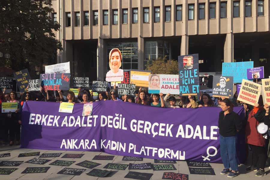 Ankara Adliyesi önünde “Erkek adalet Değil Gerçek Adalet” pankartı açan Ankara Kadın Platformu üyesi kadınlar duruşma öncesi açıklama yapıtı. Açıklamada, “Şule ve katledilen tüm kadınlar için gerçek adalet mücadelesi için buradayız. Bu davayı örtbas etmek isteyenlere asla izin vermeyeceğiz. Kadınların hayatları çalınırken, mücadele ile kazandığımız haklarımıza saldıranların karşısında biz varız. Dayanışma ve mücadele ile her yerdeyiz. Söz veriyoruz ki gerçek adaleti kazanacağız. Katilleri aklamanıza, cezasızlıkla ödüllendirmenize izin vermeyeceğiz. Şule için adalet sağlanana kadar davanın takipçisi olacağız”.
