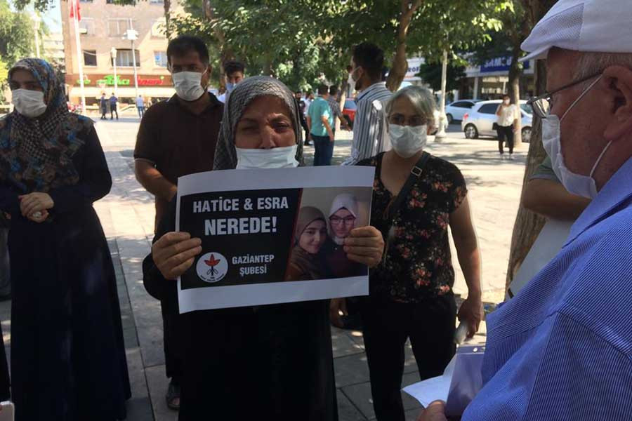 İHD Gaziantep Şubesi, 11 gündür haber alınamayan Suriyeli mülteci Hadice ve Esra Hüseyin için basın açıklaması düzenledi. Yeşilsu Parkında yapılan açıklamaya kayıp kardeşlerin ailesi de katıldı. Açıklamayı İHD Şube Başkanı Salman Yergin okudu.