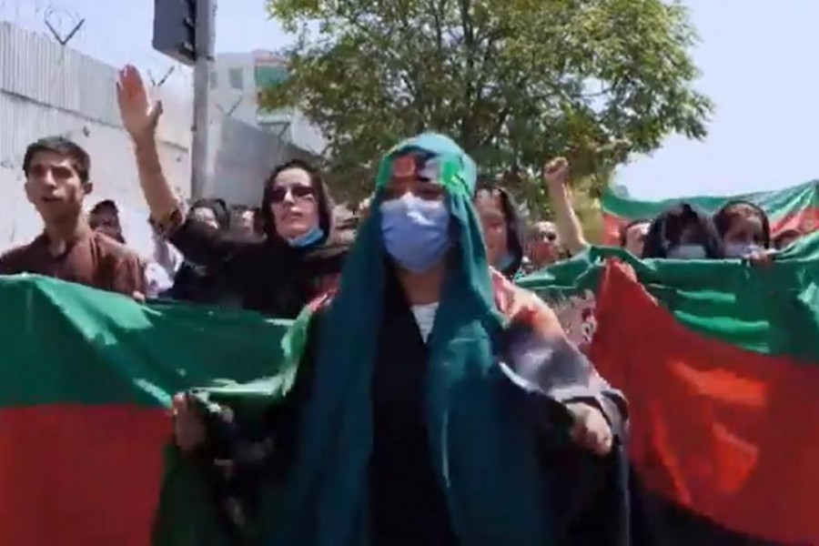 Another epic #KabulProtest with #Afghanwomen refusing to stop marching when facing off with #Talibs. Full video of the protest which ended with extreme gunfire here - https://t.co/9s6ksw6AUL pic.twitter.com/njoyi20UND