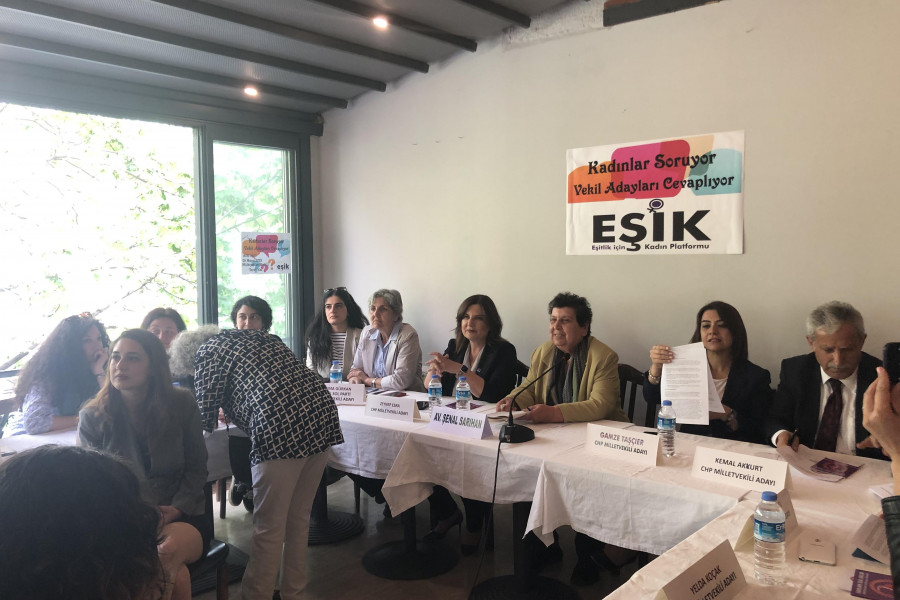 Eşitlik İçin Kadın Platformu (EŞİK) Ankara’da “Kadınlar soruyor, adaylar yanıtlıyor” etkinliği düzenledi. Mülkiyeliler Birliği’nde gerçekleşen etkinliğe CHP, Yeşil Sol Parti, Emek Partisi, Türkiye İşçi Partisi, Toplumsal Özgürlük Platformu, İyi Parti ve TKP’den adaylar katıldı. Yeşil Sol Parti Milletvekili Adayı ve EMEP Genel Başkan Yardımcısı Selma Gürkan, kadınların her alanda eşitliğinin sağlanması gerektiğini belirterek, “Tarikatların başta çocuklar ve kadınlar üzerinden ellerini çekmesi için mücadele ediyoruz” dedi.