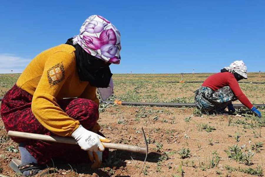 Kovid-19 pandemisi nedeniyle çalışma koşulları daha da ağırlaşan tarım işçisi kadınlar erkeklerden daha fazla iş yaparken kendileri 80 lira erkekler 120 lira yevmiye alıyor.