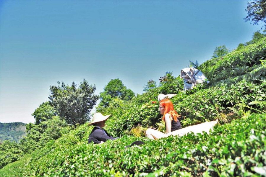 Yola koyuluyoruz ve yavaş yavaş yürümeye devam ediyoruz. Yollar çamurlu olduğu için sadece biz değil, çay üreticileri de zorlanıyor. Çayı taşırken asfalt yol olmadığı için yollar çamur nedeniyle çökmüş durumda. Bu zamanlarda ise köylü kendince çözüm olanakları da bulmuş. Yolun çamur yerlerine otlar kopararak yolu doldurmaya çalışıyorlar. Yürürken her gölge yerde çaylara rastlıyoruz. Güneşten muhafaza etmek için çaylarını ağaç gölgelerine koyan köylüler, üstlerini de yapraklarla örtüyorlar.