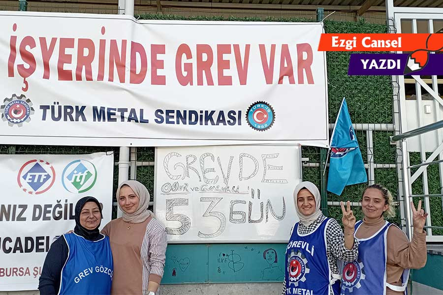 Dört kadın işçiyle konuşma fırsatı yakalıyoruz. Süreç uzadıkça baskıların, psikolojik şiddetin arttığından söz ediyorlar. Grev kararı verilmeden önce biz bir aileyiz diyerek maniple edilmeye çalışılan emekçi kadınlar, grev konusunda kararlılıklarını gösterince, işin iç yüzünün nasıl değiştiğini anlatıyorlar. Onlar için “aşağıdaki aptallar ordusu” denilmesine tepkililer. Oturarak çalışıyorlar diye düşünülmesine tepkililer. “Kocaları bunları nasıl gönderiyor?” gibi cümlelerle bel altı vurulmasına tepkililer. Bir grup sendikalı işçiye “İstediğiniz vereceğiz, kararınızdan dönün” denilmesine de “Telefonunu getir” denilerek işçiyi sendikadan istifa ettirmeye çalışılmasına da. Öyle çok, öyle gerçek ki tepkileri ve öyle onurlu ki duruşları… Tek istedikleri taleplerinin karşılanması ve TİS'in imzalanması.
