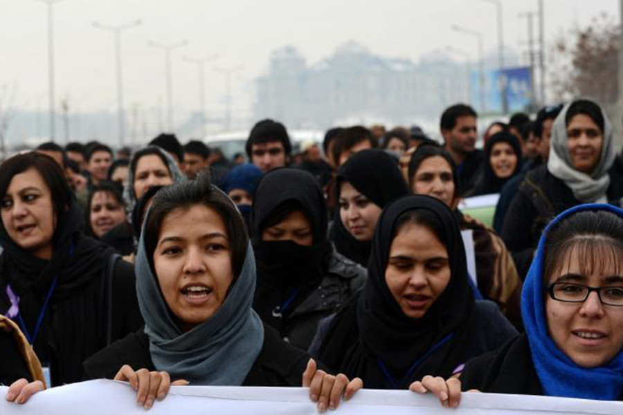 Kabil'de kadınlar eylem yaptı: 'Kadınların hayatını bitirmeyin, seslerini kesmeyin!'