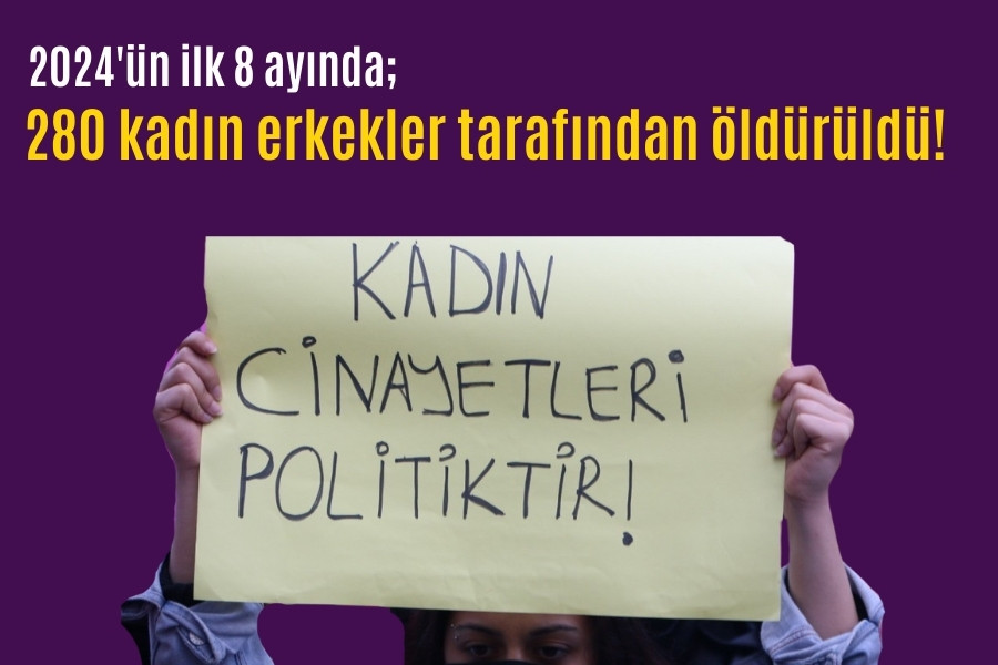 Türkiye Kadın Dernekleri Federasyonu, 2024'ün ilk 8 ayına ait kadın cinayetleri verilerini yayımladı. Buna göre 1 Ocak - 31 Ağustos tarihleri arasında en az 280 kadın erkekler tarafından öldürülürken, 50 kadının ölümü de şüpheli ölüm olarak kaydedildi.