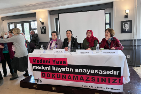 Eşitlik İçin Kadın Platformu (EŞİK), yargı paketiyle getirilmesi beklenen nafaka ve soyadı gibi Medeni Yasa değişikliklerine ilişkin basın toplantısı gerçekleştirdi.