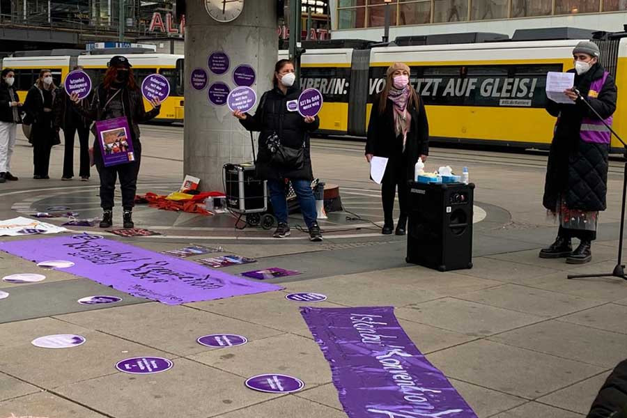 Kendi ülkelerinde Sözleşme'nin tam olarak uygulanması talebiyle ve Türkiye'nin Sözleşme'den çekilme kararına karşı Türkiye'deki kadınlarla dayanışmak için Almanya'da kadınlar sokakta!