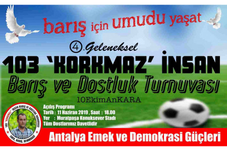 10 Ekim Ankara Katliamı’nda hayatını kaybeden 103 insan anısına düzenlenen ‘103 Korkmaz İnsan Barış ve Dostluk Turnuvası’nın dördüncüsü yarın başlıyor.
