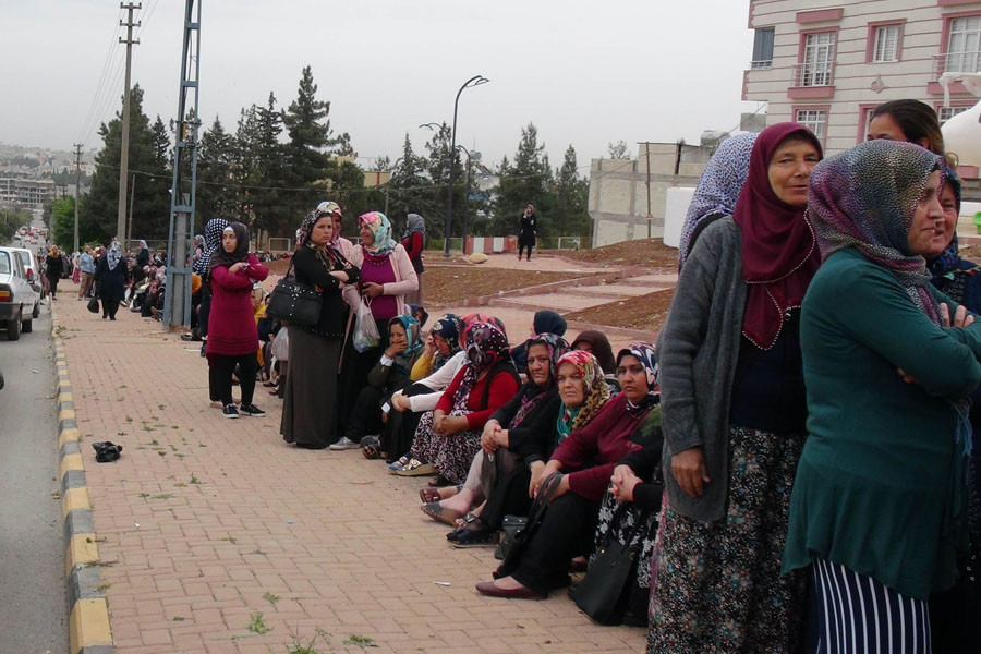 Kilis'te, Toplum Yararına Çalışma Programı (TYP) kapsamında 6 ay süreyle çalıştırılacak 3 bin 250 kişilik iş için binlerce kişi, İŞKUR önünde uzun kuyruklar oluşturdu. Kuyrukta bekleyen kadınların sayısı da çok dikkat çekici... Kadınlar ve erkekler ayrı sıralarda bekledi.