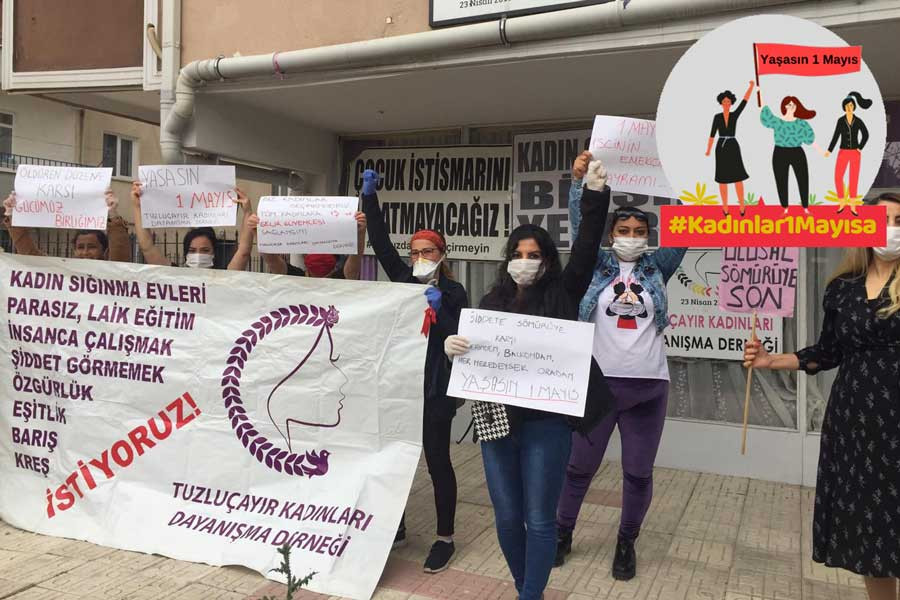 Tuzluçayır Kadınları Dayanışma Derneği üyesi kadınlar 1 Mayıs'ı derneklerinin önünde bir araya gelerek kutladılar. Kadınlar, taleplerini sloganlar ve marşlar eşliğinde dile getirdiler. Derneği kendi elleriyle hazırladıkları dövizlerle donatan kadınlar, koronavirüs salgını nedeniyle fiziksel mesafenin uygulandığı bu günlerde 1 Mayıs marşını hep birlikte söyleyerek, 1 Mayıs coşkusunu yaşadı.