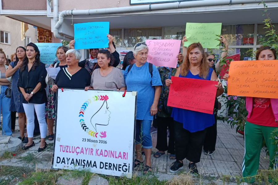 Tuzluçayır Kadınları Dayanışma Derneği Başkanı Elif Sancı açıklamada geçtiğimiz sene Ekmek ve Gül’ün çağrısıyla başlayan bir öğün ücretsiz ve sağlıklı yemek kampanyasının yüz binlerce kadın tarafından sahiplendiği, toplanan binlerce imza ile kazanım elde edildiğini vurguladı. Anasınıflarında kazanılan bir öğün ücretsiz yemeğin bu dönem verilmediğini söyleyen Sancı, "Ortaokul ve liselerde ÇEDES uygulaması ile imamlar, vaizlerin atanmasına ayrılan bütçenin parası, çocuklarımızın beslenmesine konacak sütten kesilmiştir.