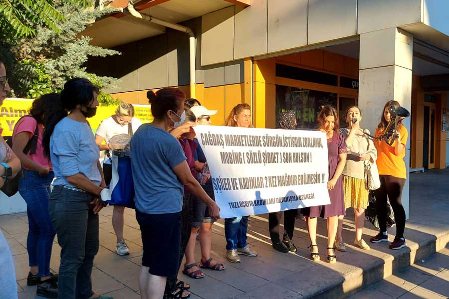 Market zincirinde yaşadığı taciz sonucu sözlü ve yazlı şikayette bulunan kadın işçinin şikayeti dikkate alınmadığı gibi işçi işten atıldı. Tuzluçayırlı kadınlar ise kadın işçiyi yalnız bırakmadı.