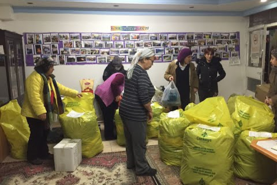 Tuzluçayır Kadınları Dayanışma Derneği üyesi kadınlar yardımları deprem bölgelerine göndermek üzere kolları sıvarken, depremzedelere dayanışma mesajları da gönderdi.
