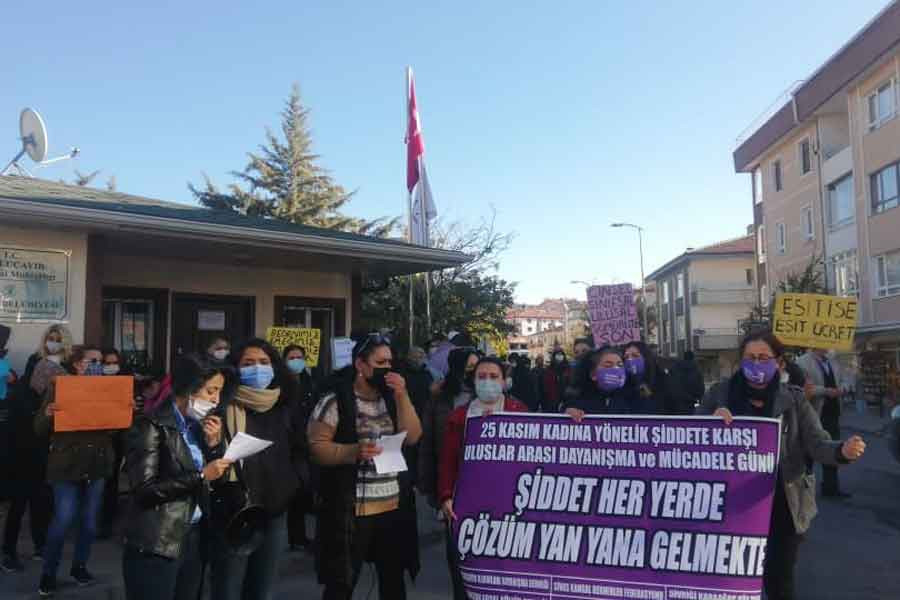 Ankara’nın Mamak ilçesinde bulunan 17 dernek, 25 Kasım Kadına Yönelik Şiddete Karşı Uluslararası Dayanışma ve Mücadele Günü için bir araya geldi. Tuzluçayır Kadınları Dayanışma Derneği önünde buluşan kadınlar, “Yaşasın Kadın Dayanışması”, “Kadınlar Artık Susmayacaklar”, “Şiddete Dur De” sloganlarıyla ve alkışlarla Tuzluçayır Mahalle Muhtarlığı önüne yürüdü. Muhtarlık önünde basın açıklaması yapan kadınlar, şiddete karşı mücadeleyi büyütme çağrısında bulundu. Burada konuşan Fatma Havsut, “Gün geçmiyor ki mahallemizdeki kadına yönelik şiddet haberlerine bir yenisi eklenmesin. Necla, Nazlı, Sonnur, Döndü, Gül, Bilge, Figen, Yasemin… Son bir ayda derneğimize başvuran şiddet mağduru kadınlar… Mamak genelinde yalnızca mart-haziran döneminde 500 kadın şiddete uğradı ve karakola başvurdu. Bu 500 kişi uğradığı şiddet sonucunda karakola başvuranlar. Bir de ‘Kol kırılır, yen içinde kalır’ diyerek susup kaderine razı olanlar var” dedi.