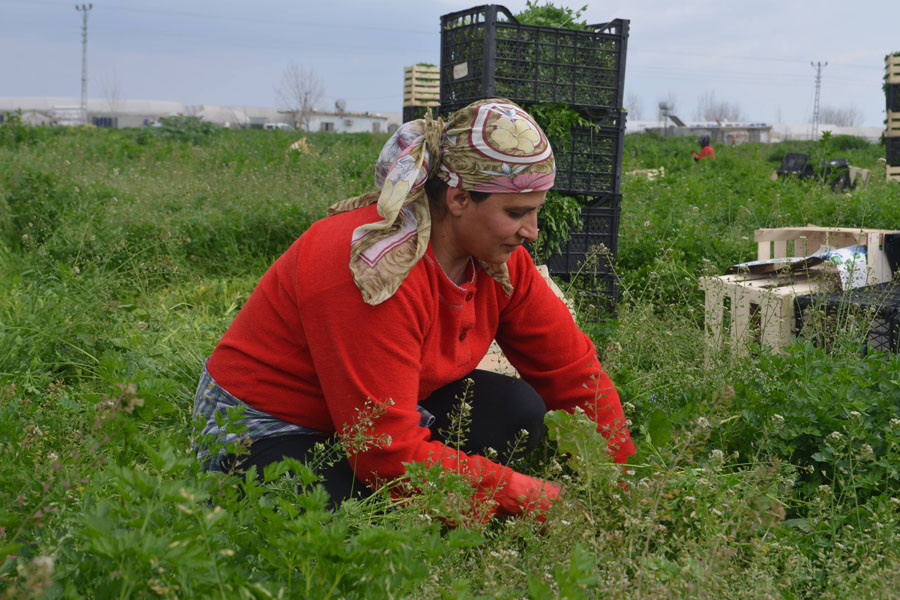 Çukurova’da yaşayan tarım işçisi kadınlar günde 12 saat boyunca tarlada tere, roka, maydanoz ve yeşil soğan topluyorlar. “20 yıldır tarlada çalışıyorum ama değişen hiçbir şey yok. Ne geleceğimiz güvence altında ne de bir birikimimiz var. Sadece günü kurtarmaya çalışıyoruz” diyerek anlatıyor MA'ya konuşan tarım işçisi kadınlardan Yıldız Bozkoyun halini. Çukurova’nın sabahında gün sonuna dek ter dökerek işliyorlar toprağı, topluyorlar ürünü. Sabahın ilk ışıklarında yola çıktıklarını anlatıyor Yıldız, Yazın sıcakta kışın yağmur, çamur ve soğukta çalışmak zorunda kalıyor: “Mecbur olduğumuz için bu zorluklara katlanıyoruz. Aldığım para çocukların okul masraflarına ancak yetiyor.” Birde bu işin güvencesizlik yanı var tabii. Emeklerinin karşılığını da alamadığını dile getiriyor bir yandan.