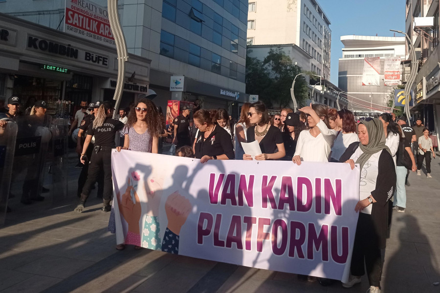 Kadınlar adına açıklamayı Özgürlük İçin Hukukçular Derneği (ÖHD) Van Şube Eş Sözcüsü Ebru Demirtepe okudu.