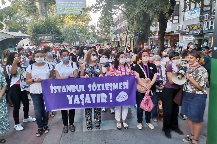 İstanbul Sözleşmesi’ne yönelik saldırılara karşı çeşitli kentlerde kadınlar yan yana gelerek birlikte mücadele etmenin yollarını aradılar. Bu kentlerden biri de Kocaeli. Temmuz ayında İstanbul Sözleşmesi’nin iptal edilmesi tartışmalarına,“İptal tartışması yapmayı bırakın, Sözleşmenin gereklerini yerine getirin” diyerek dahil olan, içinde pek çok kadın kurumu, sendika, siyasi parti, dernek ve ağlardan kadınların yer aldığı Kocaeli İstanbul Sözleşmesi İnisiyatifi, ilk toplantısından bugüne kentte önemli işler yaptı. Kent halkını bilgilendirmek için bildiriler, broşürler, basın açıklamaları, mahalle ziyaretleri, toplantılar buluşmalar gerçekleştirdi. İzmir Belediye Başkanı Fatma Hürriyet Kaplan’ı ziyaret ederek belediyenin İstanbul Sözleşmesi kapsamında yapması gerekenleri konuştu. Kentteki bütün kurumları, siyasi partileri, dernekleri, sendikaları neredeyse tek tek dolaşarak İstanbul Sözleşmesi’nin ne olduğunu anlatıp, neler yapabileceklerini konuştukları foruma davet ettiler.