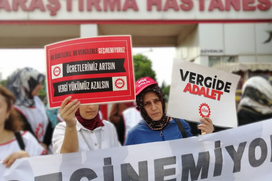 Tüketim malzemelerine zam yağmurunun devam ettiğini belirten Ozak, "Akaryakıta, elektriğe, doğalgaza peş peşe gelen zamlar iğneden ipliğe her şeye zam anlamına gelmektedir. 2024 Ocak ayında aldığımız 17 bin 2 liranın 4-5 bin lirası cebimizde eridi. Mehmet Şimşek'in hazırladığı ekonomik reçeteye göre yıl sonuna kadar 17 bin liranın yarısı elimizde kalırsa ne ala! Maaşımız cebimize girmeden vergisi kesiliyor, Patronlarınsa asgari ücretliler kadar dahi vergi vermediğini her gün okuyoruz! Enflasyonun sebebi işçiler değildir. Aşırı kâr hırsı ve bir avuç zenginin ülkenin kaynaklarına çökmesidir. Memleket ekonomisinin 2024'ün ilk 4-5 ayında yüzde 5,7 büyüdüğü bir ortamda biz hastane yemekhane işçileri de büyümedeki payımızı istiyoruz! Enflasyon ve zamlarla çalınan haklarımızın telafi edilmesi için maaşlarımıza zam istiyoruz! Çalışarak aldığımız maaşla geçinemiyoruz. Eşimiz, çocuğumuz çalışmasa gerçekten açlıktan ölürüz. Asgari ücret olarak yatan maaşlar kredi kartlarımızın asgarisini ödeyen, kartlara takla attıran bir aparat işlevini görür hale geldi. Kredi kartlarına olan borcumuz günden güne artmakta ve bizi borç sarmalının içine çekmektedir. 40-50 bin TL alan hastane çalışanlarının dahi geçim zorluğu yaşadığı bu ortamda biz asgari ücret alıyoruz. Onların aldığı maaş yüksek değil, ülke şartlarında ortalama bir yaşam sürmeye ancak yetiyor. Sağlık sektörünün bir halkası olarak biz hastane yemekhane çalışanlarının asgari ücretle geçinmeye mecbur bırakılması kabul edilir değildir" dedi.