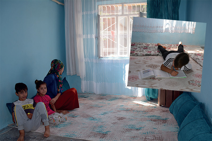Kapı önünde oturan çocuklardan birine okula gidip gitmediğini soruyorum. Hüseyin Demir, okula gittiğini söylüyor fakat; “Okul yok. Evde internet yok, o yüzden ders çalışamıyorum. Bazen internet kafeye gidiyorum. Evde ne telefon ne tablet var. Her gün de internete gidemiyorum, param yok. O yüzden bizim için okul yok” diyor. Hüseyin ile konuşurken kız kardeşi Ebuyu Hanise de; “Ağabey, benim de tabletim yok, EBA’ya giremiyorum. Derslerden geri kaldım” diyor. Bir süre sonra çocuklar toplanıp kalabalıklaşınca dolaşmaya devam ediyorum. Sokakta kapının önünde oturan kadınlardan sohbet için müsaade istiyorum. Gülsüm Tatargan, annelerini kaybeden 3 torununa kendisi bakıyor. Torunlarının okulla neredeyse bir ilişkilerinin kalmadığını kendilerinin de torunlarına uygun koşullar sağlayamadıklarını söylüyor. Tatargan, “Ne internet var, ne bilgisayar, ne telefon, mahallede internet yok zaten. Çocuklar derslerinden geri kaldılar. TV’den de EBA’ya çoğu zaman giremiyorlar. Paramız yok çocuklarımıza tablet alalım, internet çekelim. Ne yapalım, zorla karnımızı doyuruyoruz” diyor.