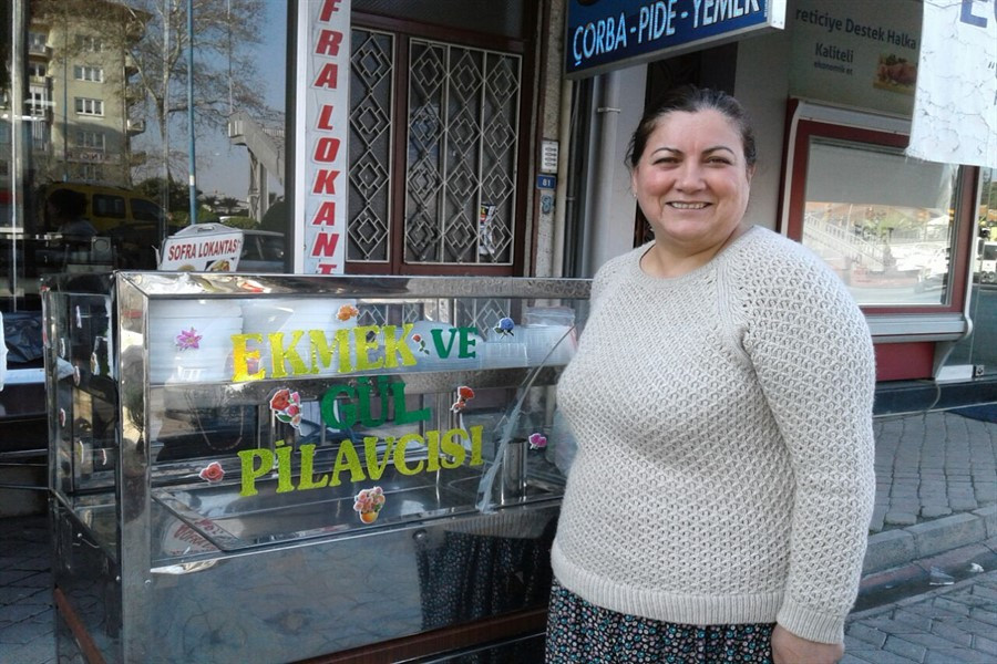 Benim hep kendi işimi yapma düşüncem vardı. Yaşamımı sürdürmem için sürekli bir gelire ihtiyacım var. ‘Öyle mi olur böyle mi olur, nasıl olur?’ derken araba ile pilav satma fikri geldi. Kadın arkadaşlar da destekledi. Aydın’da arabayla pilav satan ilk kadın oldum. Dayanışmayla ikinci el bir pilav arabası aldım. Pilavımı yaptım, ertesi günü sokakta arabamı sürüyor, pilavımı satıyordum. İlk gün pazara girdiğimde herkes bir şaşırdı. ‘Satabilir misin? Elinde kalır mı? Kışı var, soğuğu var’ dediler. Ama bir kadın olarak cesaretimi takdir ettiler.