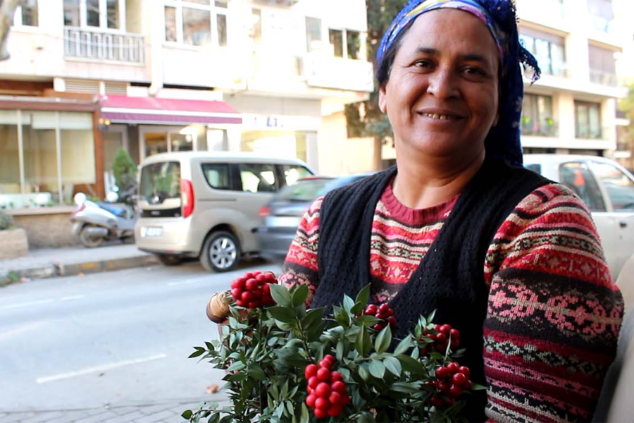 Yılbaşından 2 ay önce kırmızı meyveleri, 1 ay kala da dalları dağlardan, ormanlık alanlardan çalıları yara yara, elleri yırtıla yırtıla topladıklarından bahsediyor Çiçekçi Selda. Kırmızı meyvelerle dikenli dalları birbirine bağladıklarını ve bir demet oluşturduklarını anlatıyor. Ellerindeki yaralar hâlâ duruyor, yara bandı baş parmağında sarılı. Ellerini gösteriyor ve ekliyor, “Görüyorsunuz, binbir emekle toplanıyor bunlar ama satacağımız zaman 10 lirayı çok görüyorlar bize. Pahalı diyorlar. Bu kadar emeği, zorluğu görmüyorlar. Ellerimin hepsi yara. El demeye bin tane şahit lazım.”