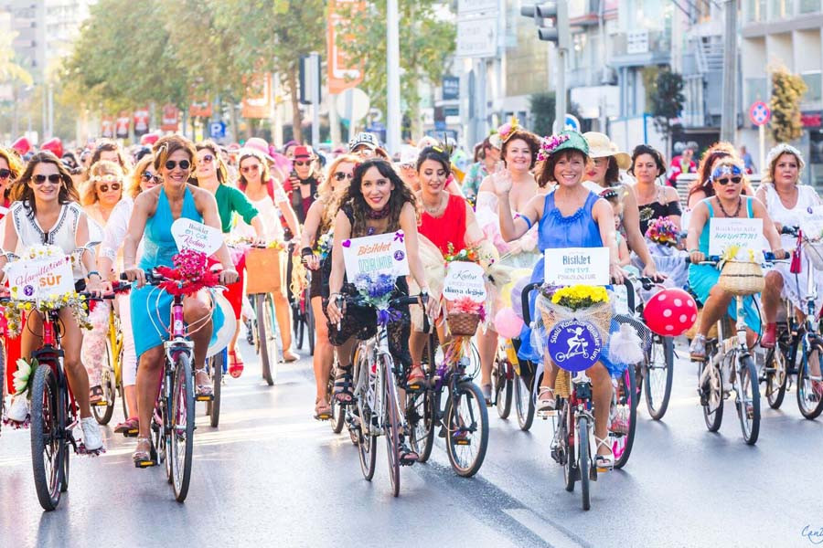Türkiye'nin pek çok yerinde bir araya gelen kadınlar, bisiklet kullanımı yaygınlaştırmak adına 'Süslü Kadınlar Bisiklet Turu' etkinliği düzenledi.