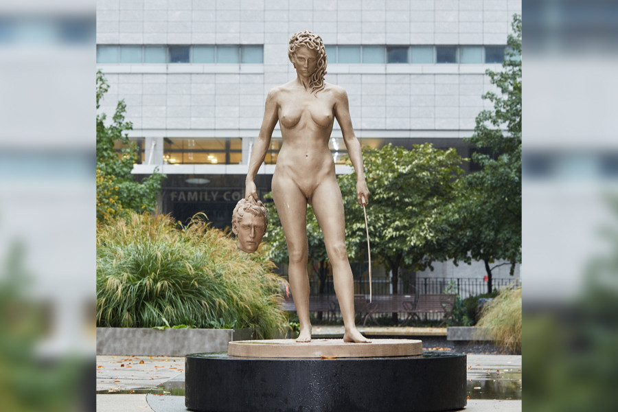 “Perseus Başıyla Medusa” heykeli son Harvey Weinstein davası da dahil olmak üzere yüksek profilli istismar davalarının görüldüğü New York Ceza Mahkemesi’nin karşısında sergilenecek. Nisan 2021’e kadar New York Ceza Mahkemesi’nin karşısındaki Collect Pond Park’ta görülebilecek.