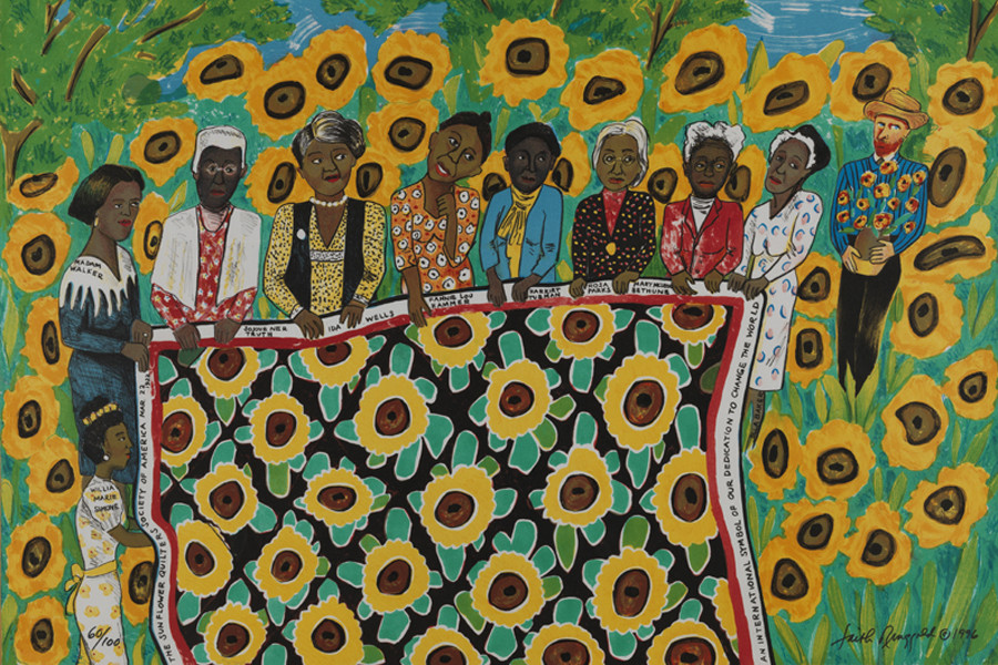 1930 New York doğumlu Afro - Amerikan Faith Ringgold özellikle genç okurları için hikayeleri resmeden bir sanatçıdır. En ünlü resmi ‘yorgan serisi’ olurken, bu seri neredeyse tüm eserlerine yansımış ve bir resimden daha fazla şey ifade etmiştir. Kumaş diken bir anneye sahip olan Ringgold, annesinden epey etkilenmiş olsa da asıl esin kaynağı büyükannesi olmuştur. Büyükannesi gençlik yıllarında köle olmuş ve beyaz ırka ait sahiplerine yorgan dikmiştir ki o dönem Afro - Amerikalı köle toplumunda yorganın önemi oldukça büyüktür. Dokuma yorganlar Afrika'da erkekler tarafından yapılırken bir kadın geleneği olmuş ve devam eden köle kültürüyle Amerika'ya getirilen Afro - Amerikanlar'a ait bir yorgan verme geleneği oluşmuştur (kölelere verilmiş). Özgürleşen kölelerin sonradan anılarını oluşturan bu yorgan geleneği, sıcak tutmasından ziyade bir mesaj panosu olmuştur. Ruhsal semboller, asimetrik tasarımlar, parlak renkler, geometrik çizimler yorganlara dahil edilmiş ve Rinngold'un çizimlerinde de yorgan ana tema olmuştur.