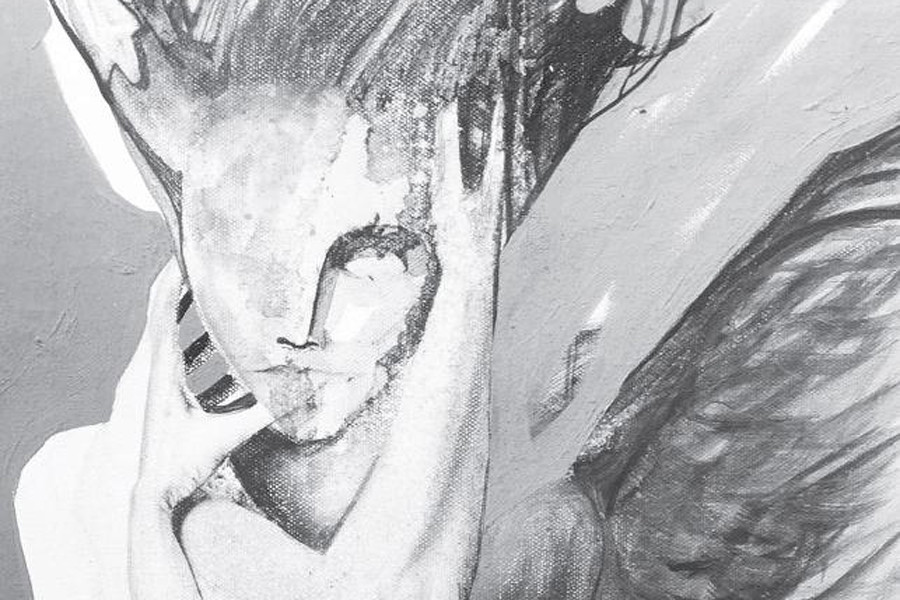 Yılan saçlı kadın portrelerinin merkezde olduğu sergi, sanatçının bu eserlerde tercih ettiği mürekkebin akışkanlığının da yardımıyla, Medusaların başlarını birbirine doluyor.