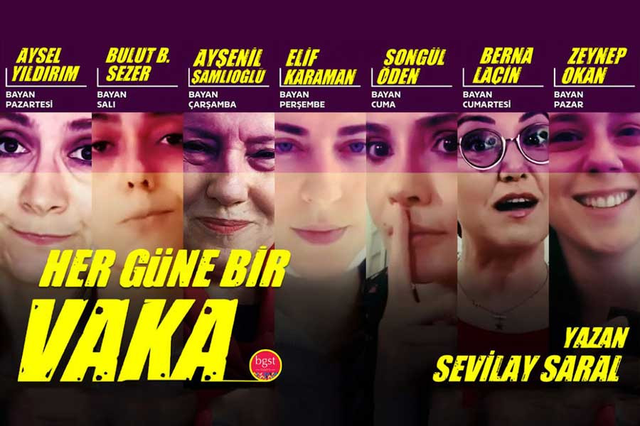 Türkiye’de kadın olmanın büyük zorlukları olduğunu hepimiz biliyoruz. Bu süreç bitip Bayan Pazartesi, Bayan Salı, Bayan Çarşamba, Bayan Perşembe, Bayan Cuma, Bayan Cumartesi, Bayan Pazar “yeni normalle” karşı karşıya kaldıklarında sizce ne yaşayacaklar? Bu “yeni normal” size ne düşündürüyor?“Yeni normalle” karşılaşacak olan kadınların deneyimleyeceklerinin, “Her Güne Bir Vaka”da anlattıklarından elbette daha iyi olmasını isterim ama daha iyi olacağını düşünmüyorum maalesef. Önümüzdeki resme yakından bakınca sıkıntılar biraz daha derinleşecek gibi geliyor. Kadınların gelir, barınma, gıda, eğitim ve sağlık gibi temel haklarının önünde türlü çeşitli engeller olduğu sürece gelecek güzel günlerden bahsetmek çok zor. Üstüne bir de ataerkil tahakküm ve şiddet eklendiğinde daha da zor. Ama bu yolun sonu değil elbette, kadınlar her şeye rağmen bir araya gelecek, yolu yöntemi ne olursa olsun direnmeyi sürdürecektir. Biz de bu dönemde “Her Güne Bir Vaka” projesinde bu itkiyle buluştuk diye düşünüyorum, tiyatronun dili ve ekrandan kalabalıklara ulaşma olanaklarıyla da sözümüzü söyleyelim istedik.