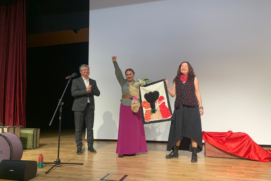 Kız Kardeşlik Köprüsüyle Hayatı Yeniden Kuruyoruz kampanyamızı büyütmek, depremzede kadınlarla dayanışmayı güçlendirmek için Jülide Kural, Ben Rosa Luxemburg oyununu sahneledi.