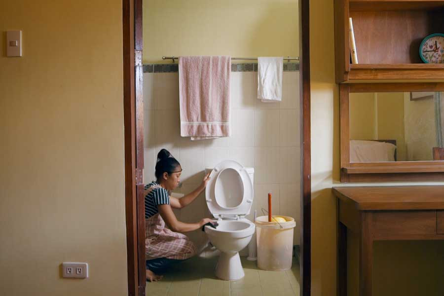 Filmin ilk sahnesi Filipinli ev işçisi genç bir kadının, elinde bir bezle alafranga tuvaleti temizleme sahnesiyle açılıyor. Tuvaleti hiç durmadan ovalayan kadın bir süre sonra ağlamaya başlıyor. Daha iyi yaşam koşulları için evinden, ailesinden binlerce kilometre uzakta olmaya zorlanma durumu geliyor belki aklına. Belki de patronun baskısı, yaşadığı şiddet ya da bir taciz olayı...