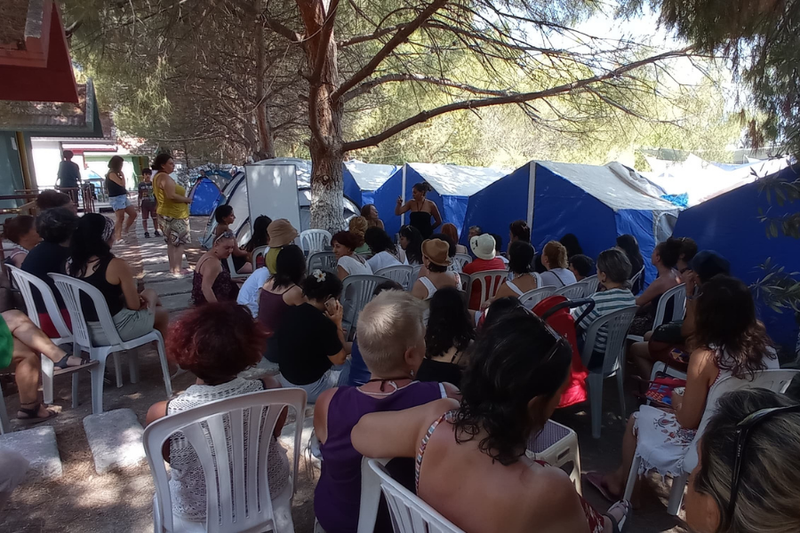 Daha öncesinde giden arkadaşlardan çokça dinlediğim yaz kampını ilk defa 2011 yılında deneyimledim. İlk kez tatilimi bir çadır kampında geçirdim. Anlatılanlardan aldığım güvenle, bekar bir kadın olarak beş yaşındaki kızımla birlikte gitmiştim Emek Kampı’na. Bu yılki gibi, o zaman da İzmir’in Selçuk ilçesinde gerçekleşmişti. Çok fazla bir beklentiyle katılmamıştım kampa. Tek beklentim, kızım için güvenli bir ortam olmasıydı. Kamp alanına geldiğimizde bizi karşılayanların nezaketi ve gülümseyen yüzleri, ilk anda içimizi ısıtmıştı. Bize gösterilen çadıra yerleştikten sonra kampın düzeni ve işleyişiyle ilgili bilgilendirme yapıldı. O andan sonra, artık ben de bir kamp sakiniydim ve işleyişin bir parçası olmuştum.
