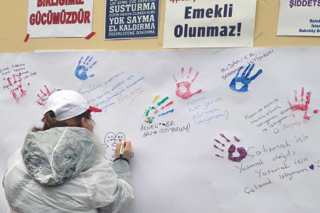 Grevdeki Bakırköy Belediyesi işçisi kadınlar, direniş alanından umutlarını, mücadelelerini, taleplerini yazarak Ekmek ve Gül okurlarına selamlarını yolluyor…