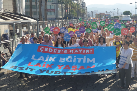 'Adım adım gelen tehlikenin farkında olmalıyız. ÇEDES uygulaması, önlük dayatması karanlığa doğru bir kapı açıyor bizlere. Bizlerin bu kapıyı kapatmak gibi bir görevimiz var.'