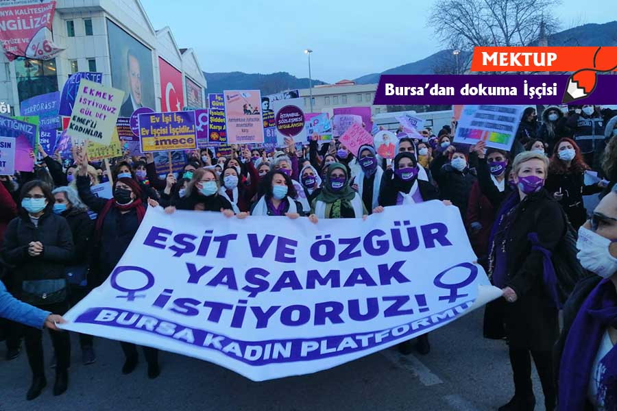 Hafta başı gece vardiyasında kalite kontrolde 4 kadın çalışıyoruz. Sabahı iple çekiyoruz, işimiz de ip zaten. İlmik ilmik dokuyoruz ömrümüzü. Çay molasında, arkadaşlarıma konuyu anlatıp yaşam hakkımızı koruyan bu sözleşmenin hangi amaçla niye geri çekildiğini ve bu yasanın bizler için ne anlama geldiğini anlatıyor ve onlara da bu konudaki düşüncelerini soruyorum.