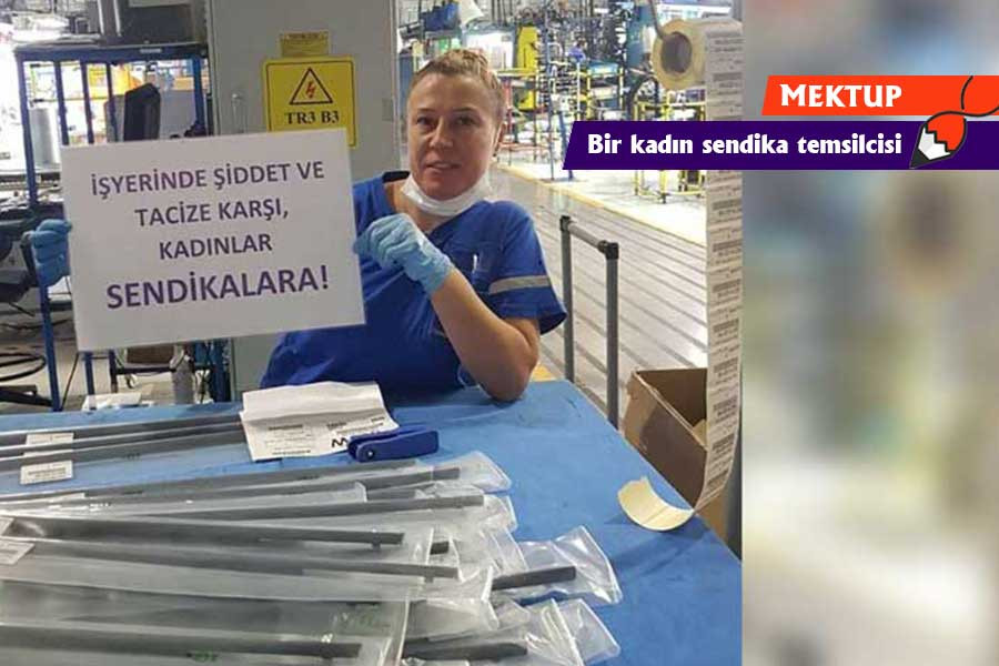 Şimdi bir kadın sendika temsilcisi diyeceğim imza olarak, bu ismimi vermekten korktuğumdan değil tabii ki, bireyi değil örgütü öne çıkarma gereksiniminden. Yaşasın örgütlü mücadelemiz, yaşasın birlik ve dayanışma.