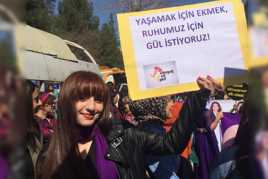 Resmi bir 8 Mart gösterisi değildi... Ama bir devlet kurumu, İstanbul’da bir anadolu lisesinde idim. Sahnede kocaman “Ekmek ve Gül” yazısı önünde kız öğrenciler, Şili’de başlayıp tüm dünyaya yayılan “Las Tesis” protestoların ülkemizde polisin saldırısına uğramasını protesto edercesine dans etmesiyle başladı. Salonda tüm kıpırdanmalar, fısıldaşmalar bitmiş sahnedeki dansın ve müziğin büyüsü hepimizi etkisi altına almıştı. Biraz sonra iki genç kız rakamlarla anlattılar dünyada ve ülkemizdeki kadınları. Çarpıcı rakamlar salonda fısıldaşmalara neden oldu. Artık alıştığımız ölüm rakamları değildi sadece anlatılan. Akademik çalışmalarda profesör olanla asistan olan kadınlar arasındaki gittikçe azalan kadın akademisyen sayısına dikkat çekmek bile başka bir dokunuştu soğuk rakamsal verilere. “Okulda 8 Mart’ın işi ne” diyen idareciler bile ürkütücü TÜİK verilerini dinlerken eminim tüyleri ürpermiştir.