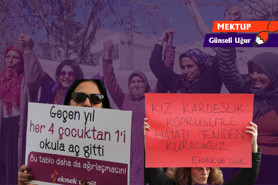 Kısaca özetlemeye çalıştığım bu çerçevede değerlendirdiğimiz zaman, “Okullarda Bir Öğün Ücretsiz Sağlıklı Yemek” ve “Kız Kardeşlik Köprüsü İle Hayatı Yeniden Kuruyoruz” (Deprem bölgesi ile dayanışma) kampanyalarının sadece itirazların, protestoların, ‘yeter artık’ların değil net somut taleplere odaklı çalışmaların yürütülmesine örnek olduğunu düşünüyorum. Ki bu çalışmalarda sonuç alana kadar, gerçek, somut, elle tutulur sonuçlar görene kadar çalışmaların devam etmesi, hâlâ devam etmekte olması en önemli kriterlerden biridir.