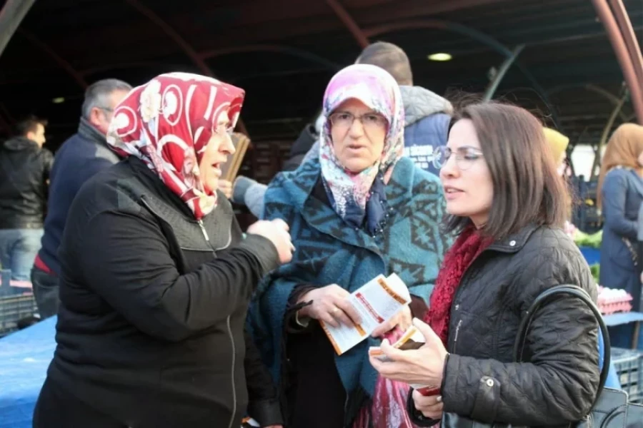 Bağımsız aday Eylem Sarıoğlu, semt pazarında kadınlarla buluştu