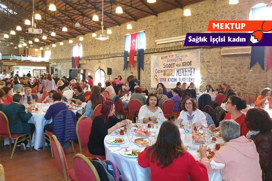 Sağlık işçilerinin yüzde 80’inin kadın olması da oldukça önemli. Sağlık işçisi kadınlar olarak hem iş yaşamında hem de yaşamın içinde ağır yüklerimiz var. Dertlerimiz kaygılarımız ortaksa; dayanışma bizler için ilaç olacaktır. Bu yüzden sendikamızın (Sağlık-İş) kadın kollarında birlikteliğimizi artırmamız çok önemli. “Kadından da temsilci mi olur?” lafları duyulsa da pek çok hastanede kadın arkadaşlardan temsilci olundu... Kadroya geçiş sonrası toplu iş sözleşmesi imzaladık, kadın arkadaşlarımız için de süt izinleri, doğum izinleri ile ilgili maddelerde de güzel kazanımlar oldu. Bir sonraki toplu iş sözleşmesinde neden daha fazla haklarımız olmasın; mesela regl günlerimizde izinli olalım, 8 Mart Dünya Emekçi Kadınlar Günü resmi tatil olsun diyelim, maruz kaldığımız tacize, her türden şiddete ve yoksullaşmayla karşı örgütlü mücadele edelim. Bunları kürsüde söyleyemedik, o yüzden Ekmek ve Gül aracılığıyla ifade etmek istedim…