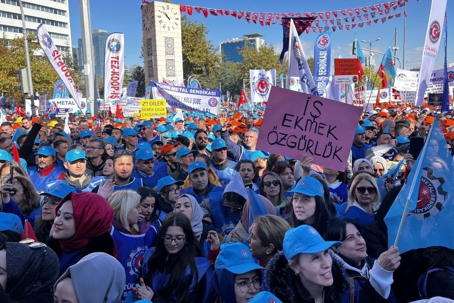 Neden insanca bir yaşam yaşayamıyoruz? Biz hakkımızdan fazlasını istemiyoruz, sadece hakkımızı verin, insanca yaşayalım artık diyoruz! Genç bir işçi kadın olarak sizlere sesleniyorum, bir patronun cebine giren para ile bir işçinin cebine giren ücreti karşılaştırın. Biz sekiz saatin belki en fazla bir saatini kendimize, geri kalan yedi saatini patronlara çalışıyoruz. İşçiler patronlardan kendi cüzdanlarına aktardıkları, işçilerin hakları olan ücreti, insanca çalışma koşullarını ve özgürlüklerini istiyor. İnsanca yaşama evet diyorum, köleliğe hayır!